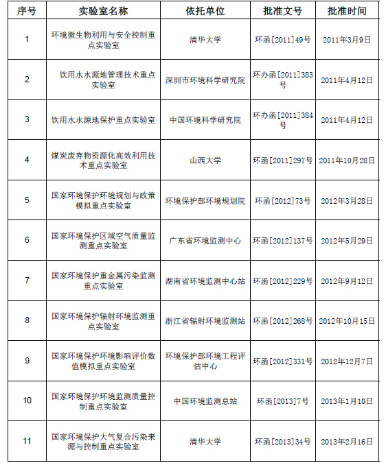 國家環(huán)境保護重點實驗室名單