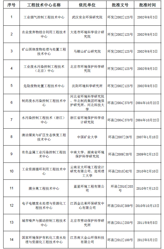 國家環(huán)境保護工程技術中心名單