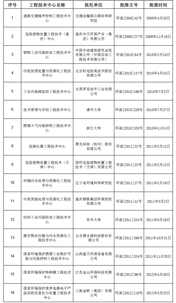 另據(jù)環(huán)保部信息,截止2012年10月12日,已經有14個工程技術中心通過驗收并命名,16個工程技術中心批準建設。